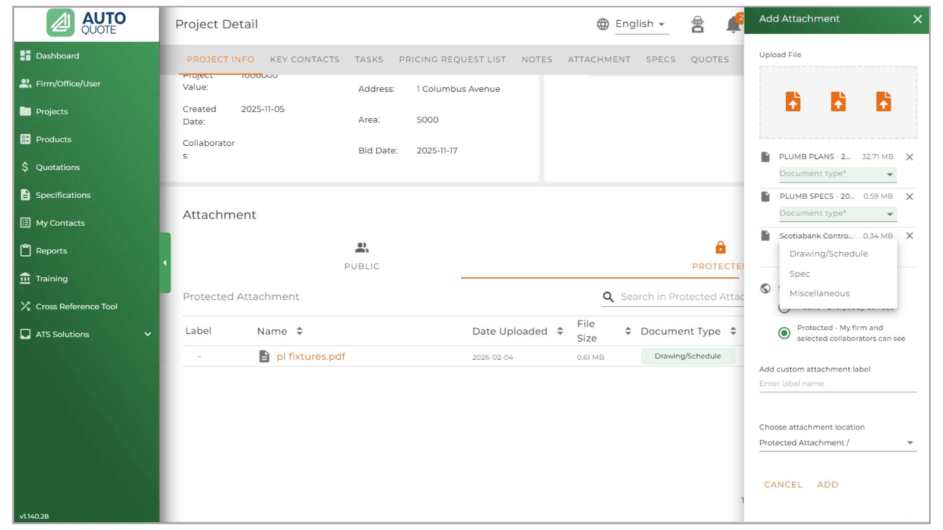 - Mandatory Document Tagging: Upon upload, you must now select a specific Document Type (e.g., Drawing, Specification, Email, or Quote).