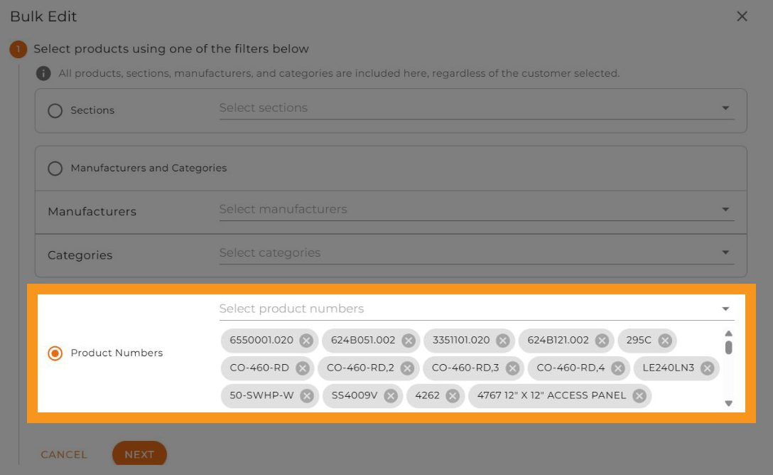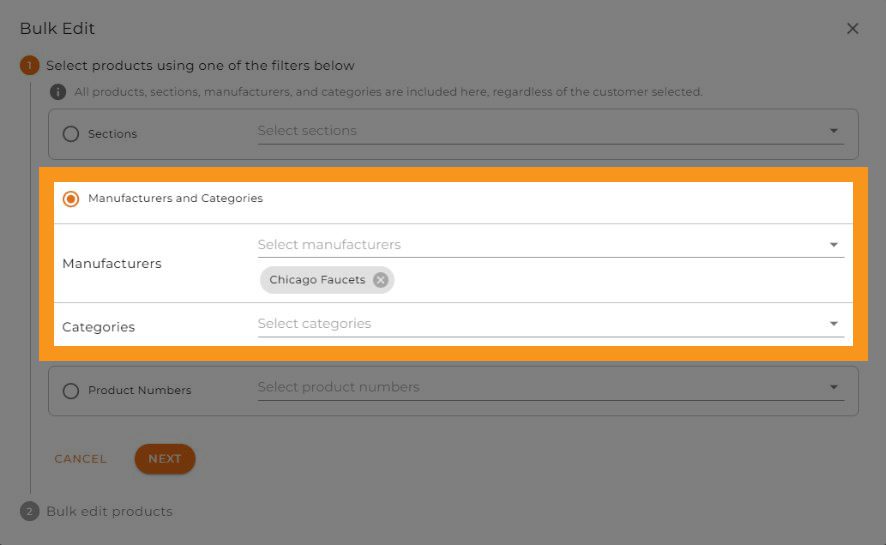 Or specific manufacturer or manufacturer and category, this will apply updates to any product from that manufacturer that was quoted.