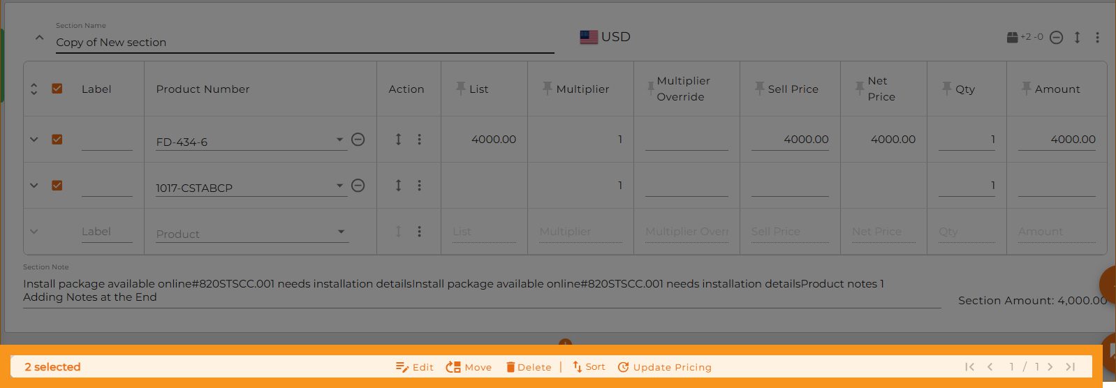 When working on the Product List on the Quote Edit page, you’ll find the new action bar at the bottom of the screen.