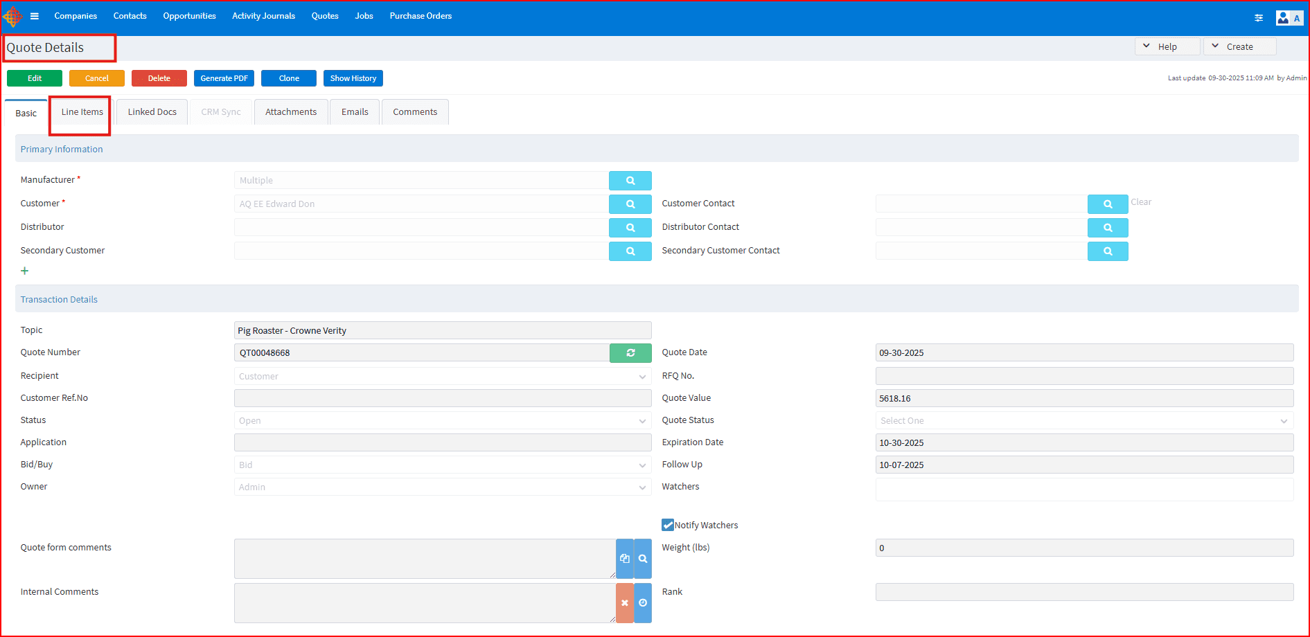 And you will find the new features which will allow you at the entire quote level to bulk update/or add